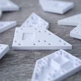 When placed into position, these components contain holes and squared indentations that line up with each other and allowing other components to directly pin and snap to the created grid. Use “Wide Panels” along the angled section. Product size: 50x25x5mm