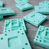 FLOOR 1.01 GREEN Minimum order quantity: 15 One-by-One unit module components. These are the smallest module pieces in the ARCKIT system used to represent the dimensions of 1.2m x 1.2m or 4ft x 4ft at a 1:48 / 1:50 metric or ¼ imperial scale. These pieces are especially useful for adding short length to longer modules and filling in small gaps. The modules can be laid out horizontally together and connected with “Links” on any side or stacked upon one another to create topographical steps of varying heights and lengths. When placed into position, these components contain holes and squared indentations that line up with each other and allowing other components to directly pin and snap to the created grid. [Green PANTONE 331M] Product size: 25x25x5mm |