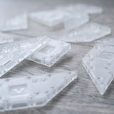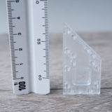 Minimum order quantity: 20 One-by-Two unit angled-left module components. These are angled module pieces in the ARCKIT system used to represent the dimensions of a 1.2m x 2.4m or 4ft x 8ft at a 1:48 / 1:50 metric or ¼ imperial scale. These pieces are especially useful in creating 45 degree angled moments or runs. The modules can be laid out horizontally together and connected with “Links” on any side or stacked upon one another to create topographical steps of varying heights and lengths. When placed into position, these components contain holes and squared indentations that line up with each other and allowing other components to directly pin and snap to the created grid. Use “Wide Panels” along the angled section. Product size: 50x25x5mm |
