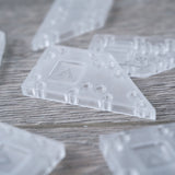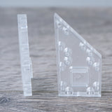 Minimum order quantity: 20 One-by-Two unit angled-right module components. These are angled module pieces in the ARCKIT system used to represent the dimensions of a 1.2m x 2.4m or 4ft x 8ft at a 1:48 / 1:50 metric or ¼ imperial scale. These pieces are especially useful in creating 45 degree angled moments or runs. The modules can be laid out horizontally together and connected with “Links” on any side or stacked upon one another to create topographical steps of varying heights and lengths. When placed into position, these components contain holes and squared indentations that line up with each other and allowing other components to directly pin and snap to the created grid. Use “Wide Panels” along the angled section. Product size: 50x25x5mm |