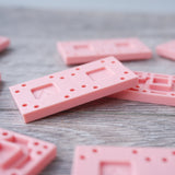 When placed into position, these components contain holes and squared indentations that line up with each other and allowing other components to directly pin and snap to the created grid.  [Red PANTONE 169M]  Product size: 50x25x5mm