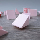 Minimum order quantity: 15 One-by-One unit module high angled roof component. These pieces are especially useful for creating a iconic roof shapes, cityscapes and landscapes. The roofs come as individual modules that can be pressed into the top squared recesses of module components. These also provide an even surface for applying “Arckitextures” [Pink PANTONE 705M] Product size: 25x25x18mm |