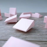 Minimum order quantity: 15 One-by-One unit module low angled roof component. These pieces are especially useful for creating a iconic roof shapes, cityscapes and landscapes. The roofs come as individual modules that can be pressed into the top squared recesses of module components. These also provide an even surface for applying “Arckitextures” [Pink PANTONE 705M] Product size: 25x25x10mm |