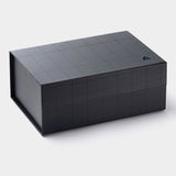 - Ultra-sleek, matt black reusable magnetic box and 3 removable storage trays.
