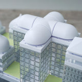 Minimum order quantity: 15 One-by-One unit module vault end shaped roof component. These pieces are especially useful for creating a iconic roof shapes, cityscapes and landscapes. The roofs come as individual modules that can be pressed into the top squared recesses of module components. These also provide an even surface for applying “Arckitextures” Product size: 25x25x10mm |